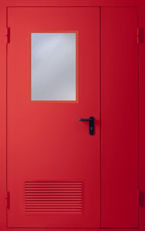 Полуторапольная противопожарная дверь с вентиляцией и стеклом EI 60 (RAL 3020)